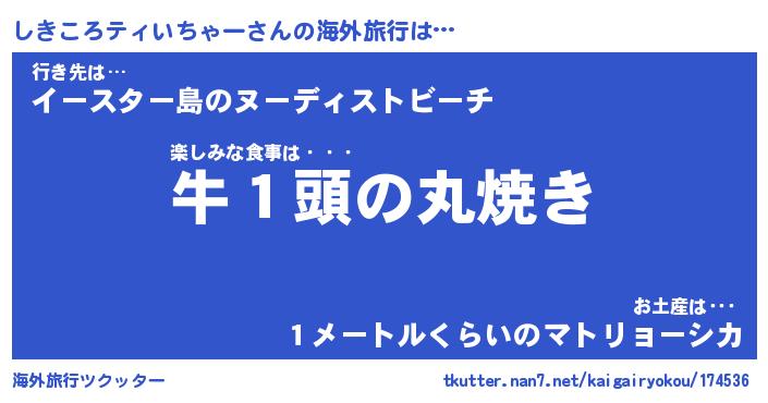 | 欧米人風あだ名 | 『マイケルしきころティいちゃー』 |