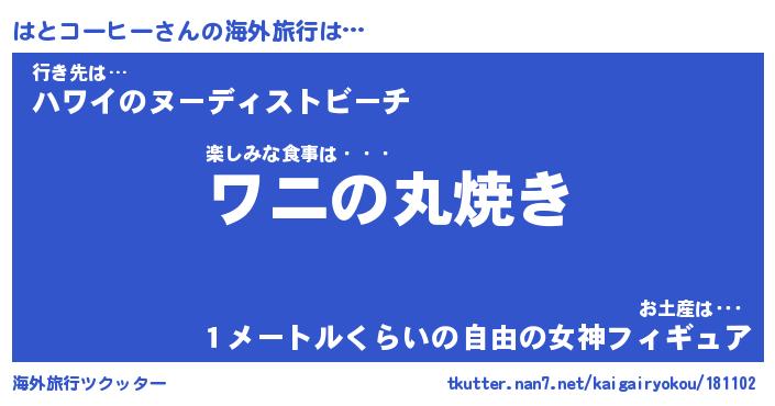 | 女子向けラノベタイトル風あだ名 | 『(仮)はとコーヒーのやんごとなき事情』 |