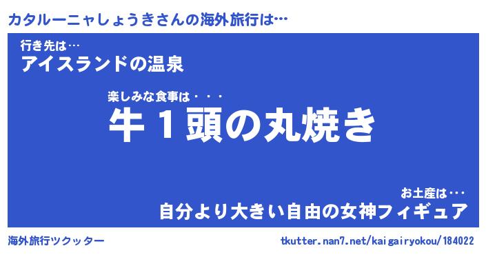 | 男性向けラノベタイトル風あだ名 | 『カタルーニャショウキアートオンライン』 |