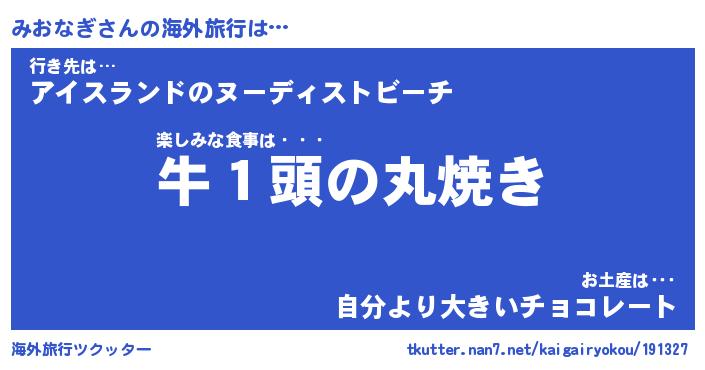 | 欧米人風あだ名 | 『マイケルみおなぎ』『ウサインみおなぎ』 |
