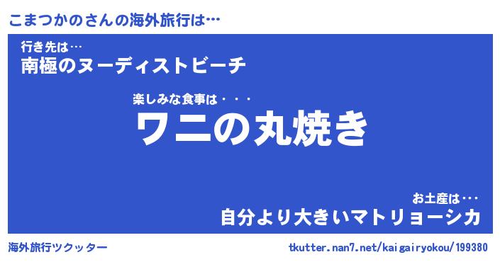 | 胡散臭い通販商品みたいなあだ名 | 『必ず成功するブレスレット…その名も「こまつかの」』 |