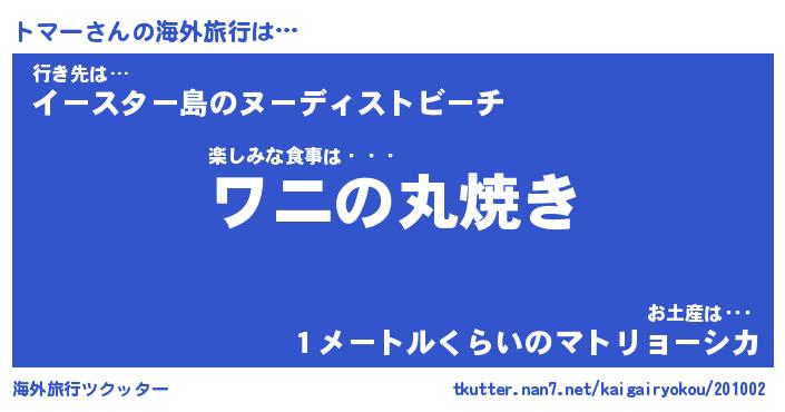 | 男性向けラノベタイトル風あだ名 | 『トマーの憂鬱』 |