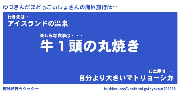 | 欧米人風あだ名 | 『マイケルゆづきんだまどっこいしょ』 |