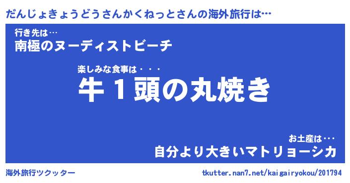 | 胡散臭い通販商品みたいなあだ名 | 『億万長者になれるブレスレット…その名も「だんじょきょうどうさんかくねっと」』 |