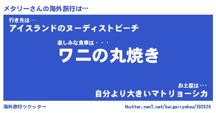 | 意味不明あだ名 | 『ペロリンメタリー』『永久保存メタリー』 |
