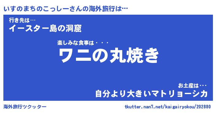 | 胡散臭い通販商品みたいなあだ名 | 『必ず成功するブレスレット…その名も「いすのまちのこっしー」』 |