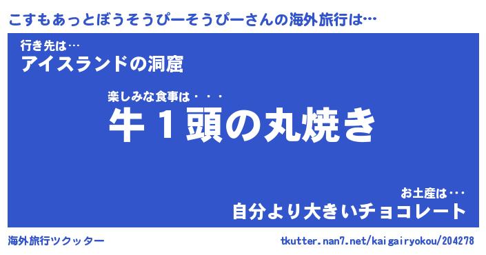 | 料理風あだ名 | 『節約★こすもあっとぼうそうぴーそうぴーと油揚げの玉子丼』 |