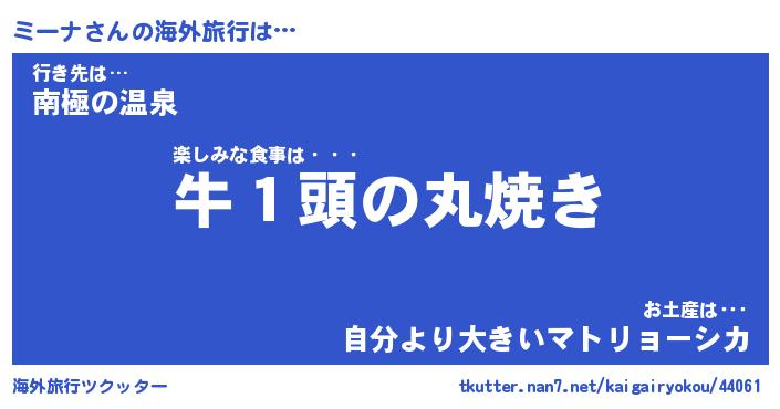 | 欧米人風あだ名 | 『マイケルミーナ』『ミーナクリステル』 |