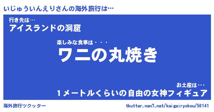 いじゅういんえりさんの海外旅行は… 楽しみな食事は・・・『ワニの丸焼き』行き先は…『アイスランドの洞窟』お土産は・・・『1メートルくらいの自由の女神フィギュア』 ツクッター #海外旅行ツクッター http://tkutter.nan7.net/kaigairyokou/50141/
