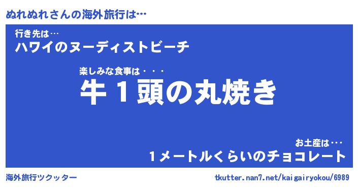 | 欧米人風あだ名 | 『マイケルぬれぬれ』『ウサインぬれぬれ』 |