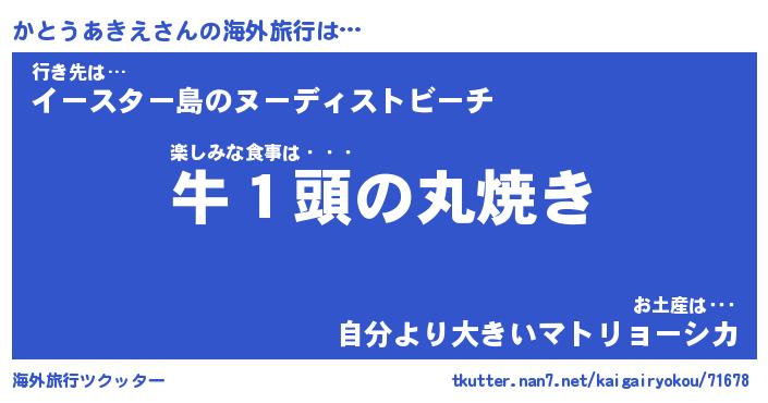 | 伝説のあだ名 | 『封印されしスナイパーかとうあきえ』 |