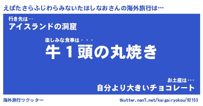 | 2回繰り返すあだ名 | 『えばえば』『ええばば』『ぶんぶん』 |