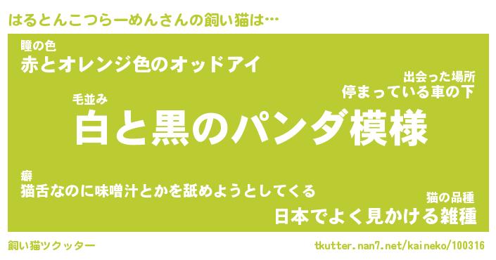 | ツイッター | はるとんこつらーめんさんのツイッターID『namakemono_man』 |