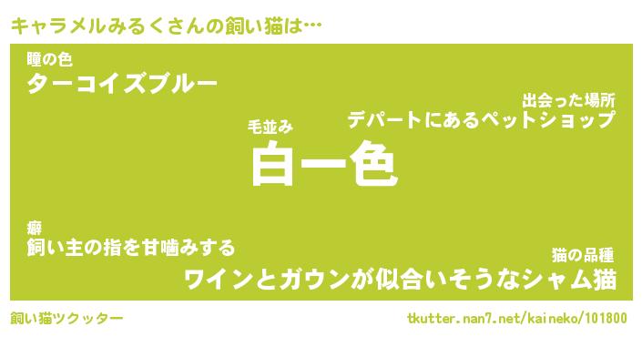 キャラメルみるくさんの飼い猫は… 毛並み『白一色』瞳の色『ターコイズブルー』猫の品種『ワインとガウンが似合いそうなシャム猫』 ツクッター #飼い猫ツクッター http://tkutter.nan7.net/kaineko/101800/