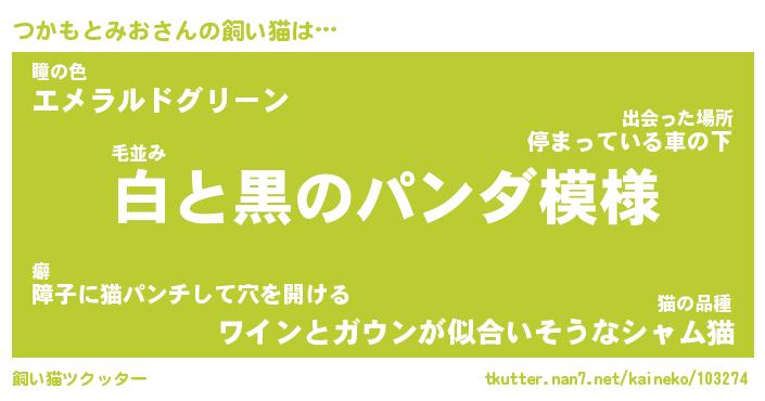| ツイッター | つかもとみおさんのツイッターID『namakemono_nyan』 |