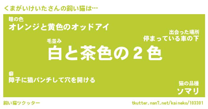 くまがいけいたさんの飼い猫は… 毛並み『白と茶色の2色』瞳の色『オレンジと黄色のオッドアイ』猫の品種『ソマリ』 ツクッター #飼い猫ツクッター http://tkutter.nan7.net/kaineko/103301/