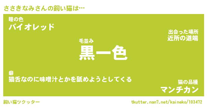 ささきなみさんの飼い猫は… 毛並み『黒一色』瞳の色『バイオレッド』猫の品種『マンチカン』 ツクッター #飼い猫ツクッター http://tkutter.nan7.net/kaineko/103472/