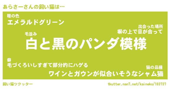 | パンダ模様のシャム猫、、(略 …「めい」 | 6月18日 03:09 |