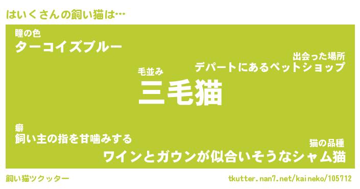 | パンダ模様のシャム猫、、(略 …「めい」 | 6月18日 03:09 |