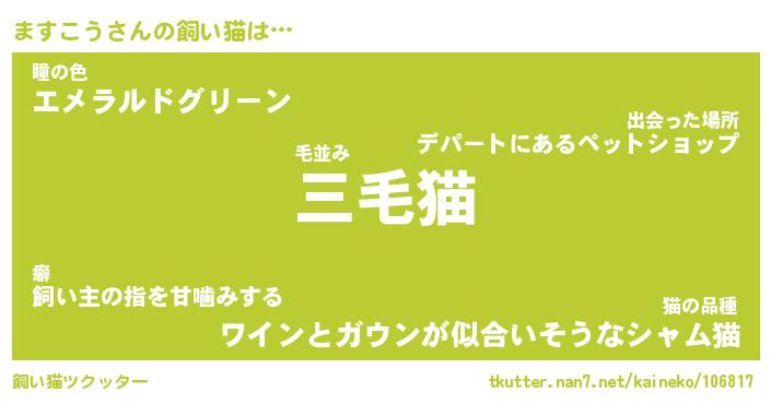 | パンダ模様のシャム猫、、(略 …「めい」 | 6月18日 03:09 |