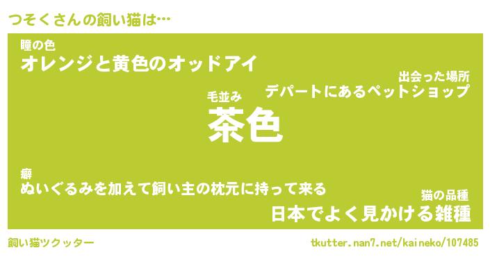 つそくさんの飼い猫は… 毛並み『茶色』瞳の色『オレンジと黄色のオッドアイ』猫の品種『日本でよく見かける雑種』 ツクッター #飼い猫ツクッター http://tkutter.nan7.net/kaineko/107485/