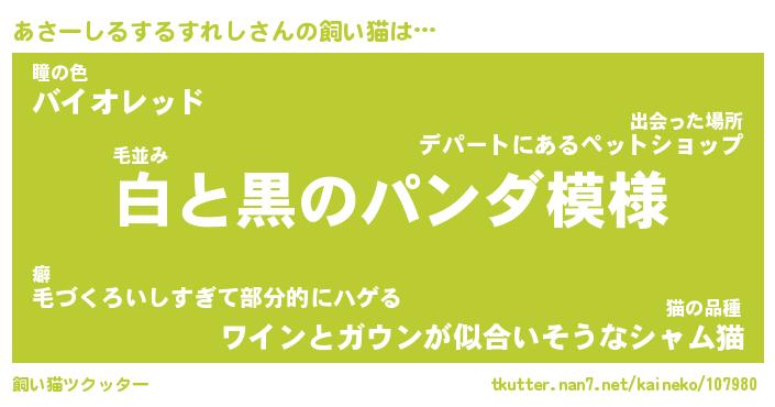 | パンダ模様のシャム猫、、(略 …「めい」 | 6月18日 03:09 |
