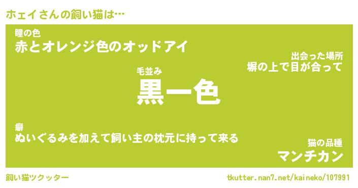 ホェイさんの飼い猫は… 毛並み『黒一色』瞳の色『赤とオレンジ色のオッドアイ』猫の品種『マンチカン』 ツクッター #飼い猫ツクッター http://tkutter.nan7.net/kaineko/107991/