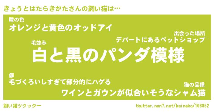 | パンダ模様のシャム猫、、(略 …「めい」 | 6月18日 03:09 |