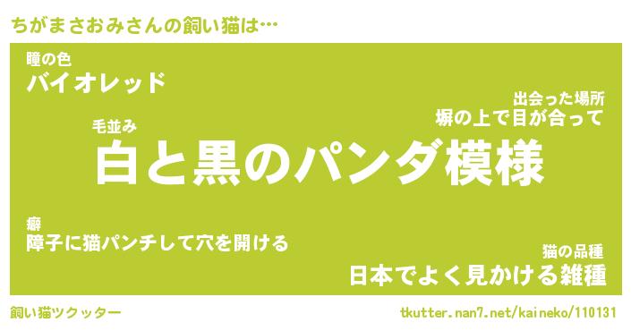 | ツイッター | ちがまさおみさんのツイッターID『dendenmushi_idle』 |
