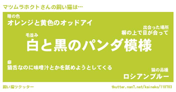 | パンダ模様のシャム猫、、(略 …「めい」 | 6月18日 03:09 |