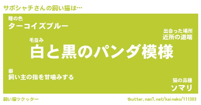 | ヒーロー風カッコイイあだ名 | 『スーパーサボシャチ』『銀牙騎士サボ』 |