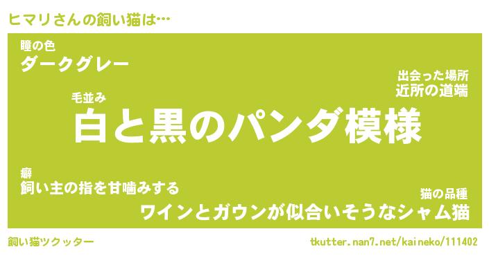 | パンダ模様のシャム猫、、(略 …「めい」 | 6月18日 03:09 |