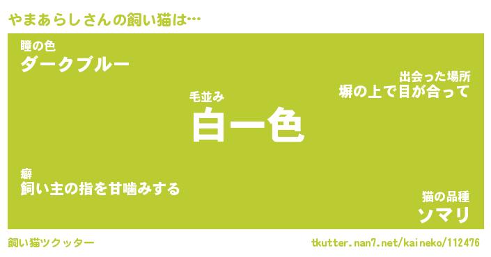 やまあらしさんの飼い猫は… 毛並み『白一色』瞳の色『ダークブルー』猫の品種『ソマリ』 ツクッター #飼い猫ツクッター http://tkutter.nan7.net/kaineko/112476/