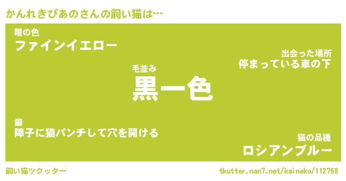 かんれきぴあのさんの飼い猫は… 毛並み『黒一色』瞳の色『ファインイエロー』猫の品種『ロシアンブルー』 ツクッター #飼い猫ツクッター http://tkutter.nan7.net/kaineko/112768/