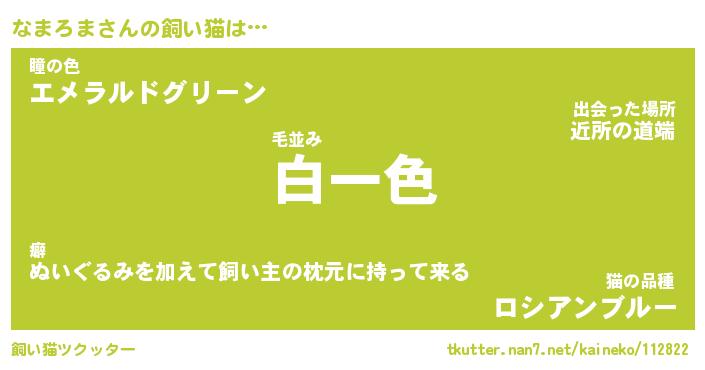 | 欧米人風あだ名 | 『マイケルなまろま』『ウサインなまろま』 |
