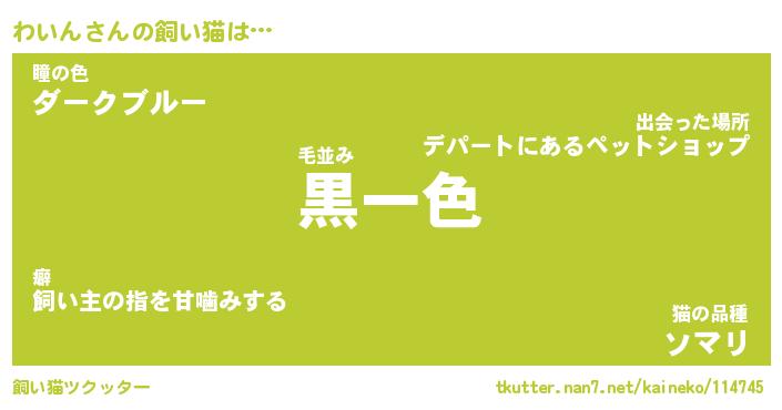 わいんさんの飼い猫は… 毛並み『黒一色』瞳の色『ダークブルー』猫の品種『ソマリ』 ツクッター #飼い猫ツクッター http://tkutter.nan7.net/kaineko/114745/