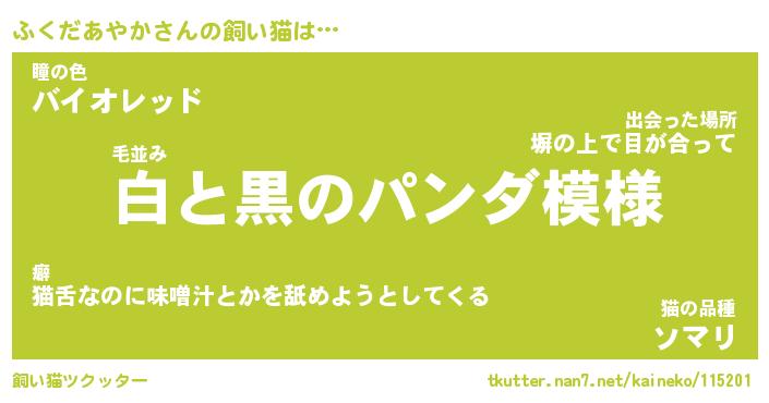 | ポケモン風あだ名 | 『フクチュウ』『フクダダネ』 |