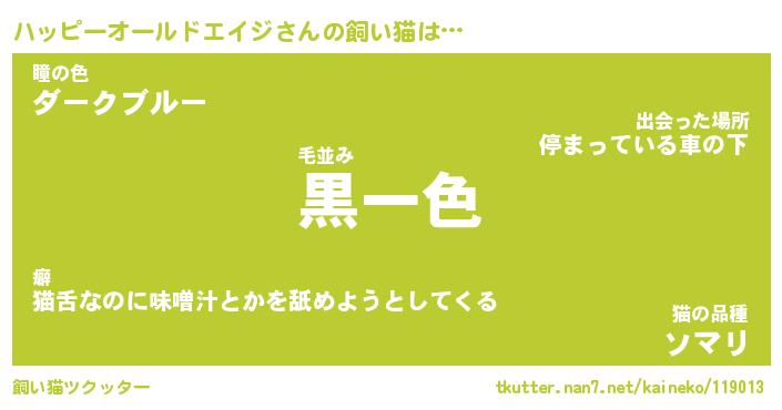 ハッピーオールドエイジさんの飼い猫は… 毛並み『黒一色』瞳の色『ダークブルー』猫の品種『ソマリ』 ツクッター #飼い猫ツクッター http://tkutter.nan7.net/kaineko/119013/