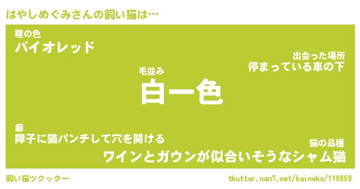 | パンダ模様のシャム猫、、(略 …「めい」 | 6月18日 03:09 |