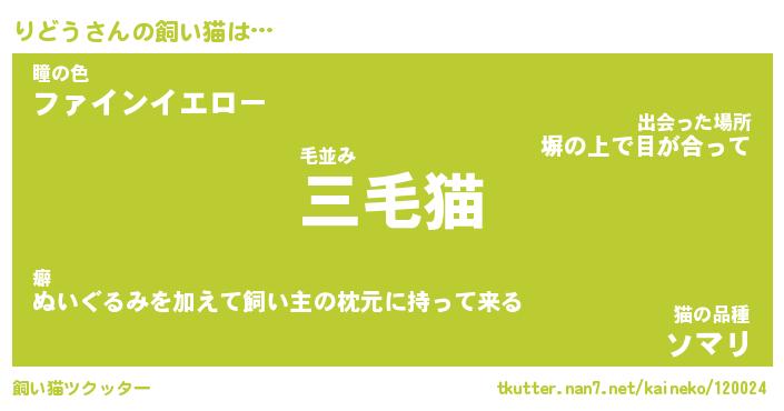 りどうさんの飼い猫は… 毛並み『三毛猫』瞳の色『ファインイエロー』猫の品種『ソマリ』 ツクッター #飼い猫ツクッター http://tkutter.nan7.net/kaineko/120024/