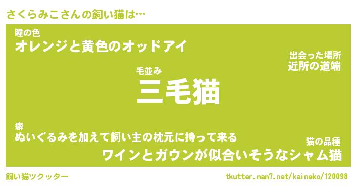 | パンダ模様のシャム猫、、(略 …「めい」 | 6月18日 03:09 |