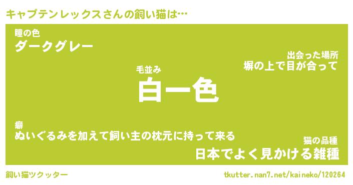 | 男性向けラノベタイトル風あだ名 | 『キャプテンレックスの憂鬱』 |