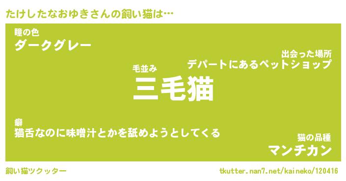 | 2回繰り返すあだ名 | 『たけたけ』『たたけけ』『がみがみ』 |
