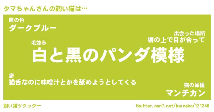 | ヘコむあだ名 | 『タマにゅー』『なまこ酢』『タマお』 |