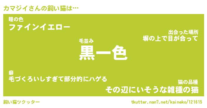 | 男性向けラノベタイトル風あだ名 | 『カマジイの憂鬱』 |