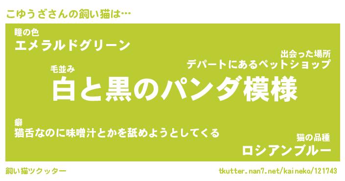 | パンダ模様のシャム猫、、(略 …「めい」 | 6月18日 03:09 |