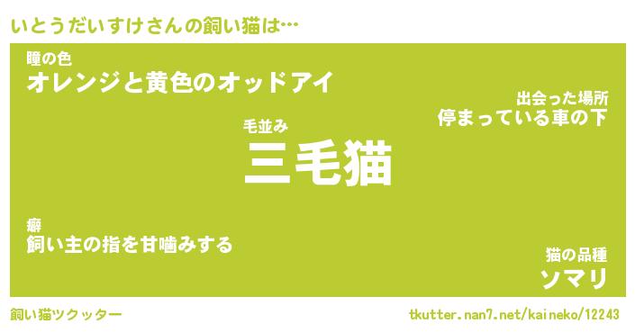 | 自動車の名前っぽいあだ名 | 『イトティマ』『イスラー』『デミイ』 |