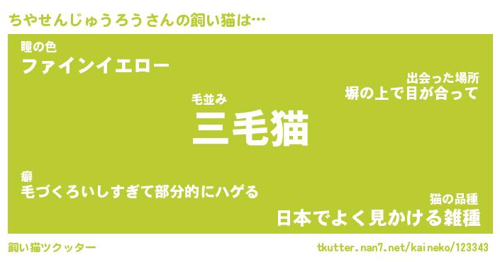 | ツイッター | ちやせんじゅうろうさんのツイッターID『dendenmushi_nyan』 |