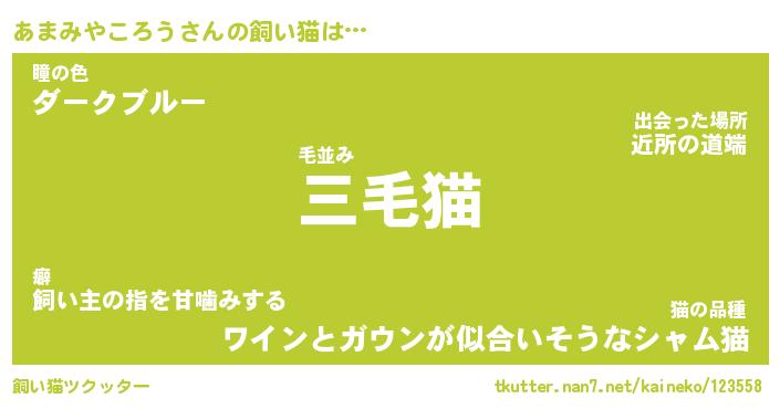 | パンダ模様のシャム猫、、(略 …「めい」 | 6月18日 03:09 |