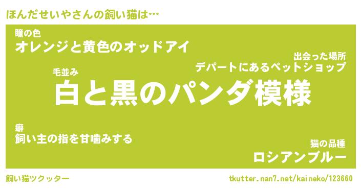 | パンダ模様のシャム猫、、(略 …「めい」 | 6月18日 03:09 |